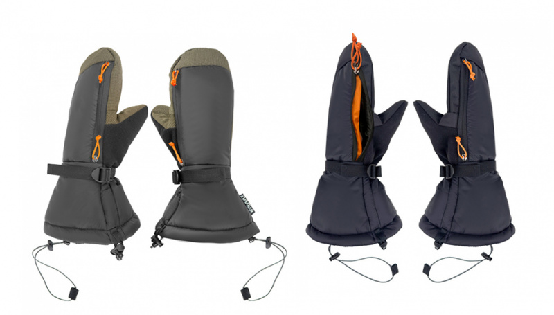 Раструб варежек достаточно широкий, ведь турист может быть в объёмной пуховке. На рукава одного из самых объемных пуховиков «BASK Khan Tengri» раструбы надеваются легко — мы проверяли. А чтобы в варежках не гулял ветер, если вы в мембране, есть утяжки раструбов, которые легко затягиваются движением одной руки. На запястьях есть фиксация стропой. Конечно, для пристраховывания есть съёмные петли с регулировками: вы можете надеть их, затянуть, и когда захотите снять варежки, их не унесёт ветром.