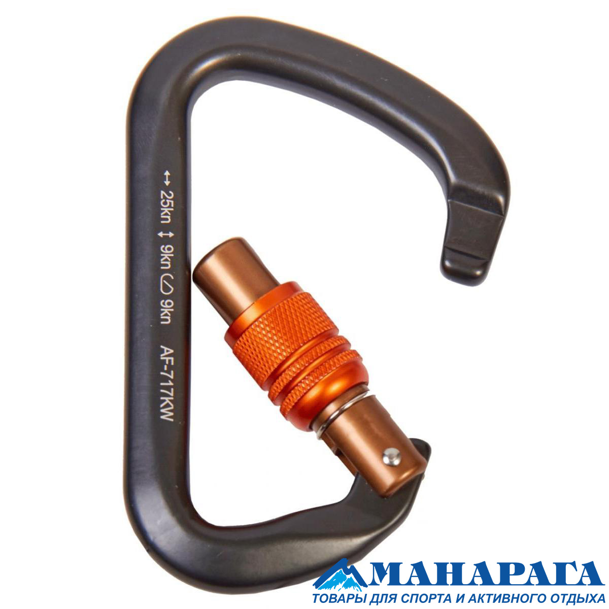 Карабин Манарага AF-717KW с муфтой - большой дюралюминиевый D-образный карабин с винтовой муфтой и защелкой типа keylock.