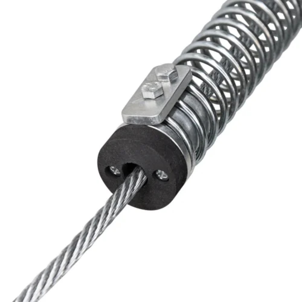 • Соединители, заглушка, демпфер и пружины устанавливаются на трос до его фиксации за конечную анкерную точку.