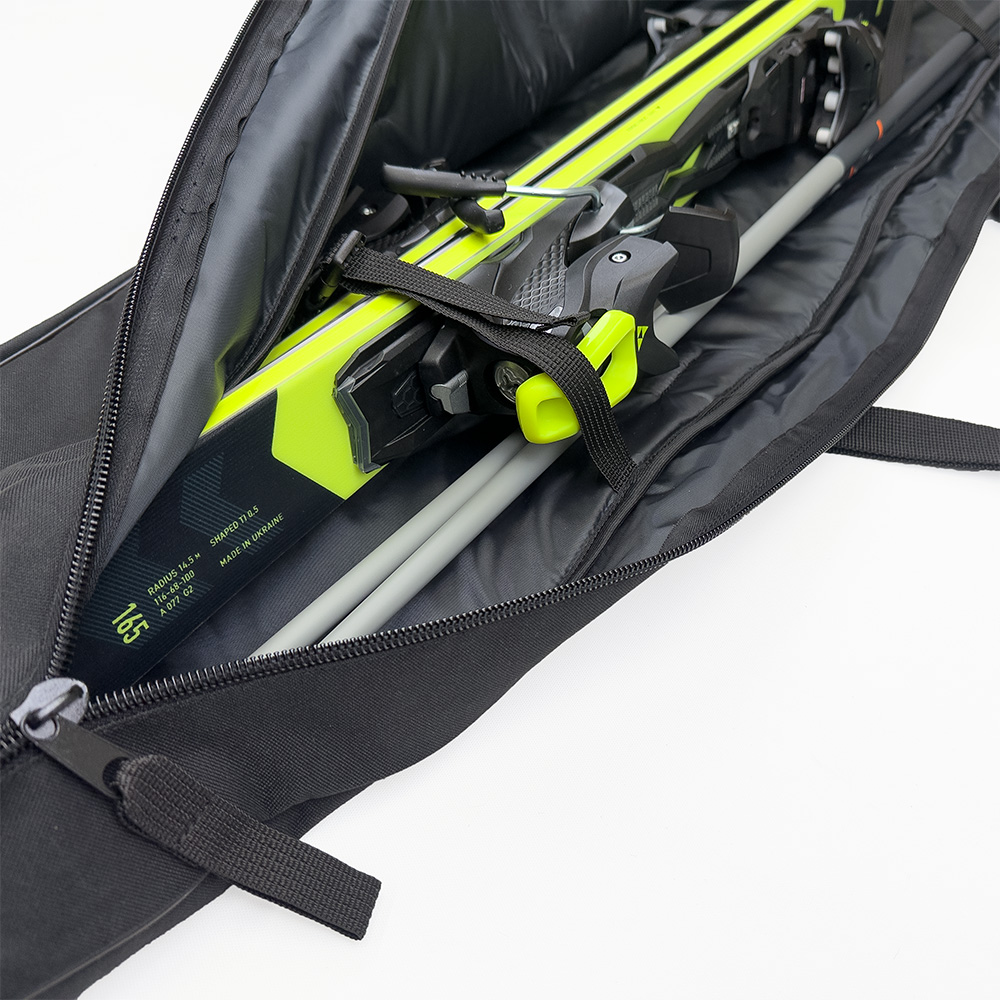 Чехол для горных лыж Манарага предназначен для комфортной и безопасной перевозки одной пары лыж с палками.