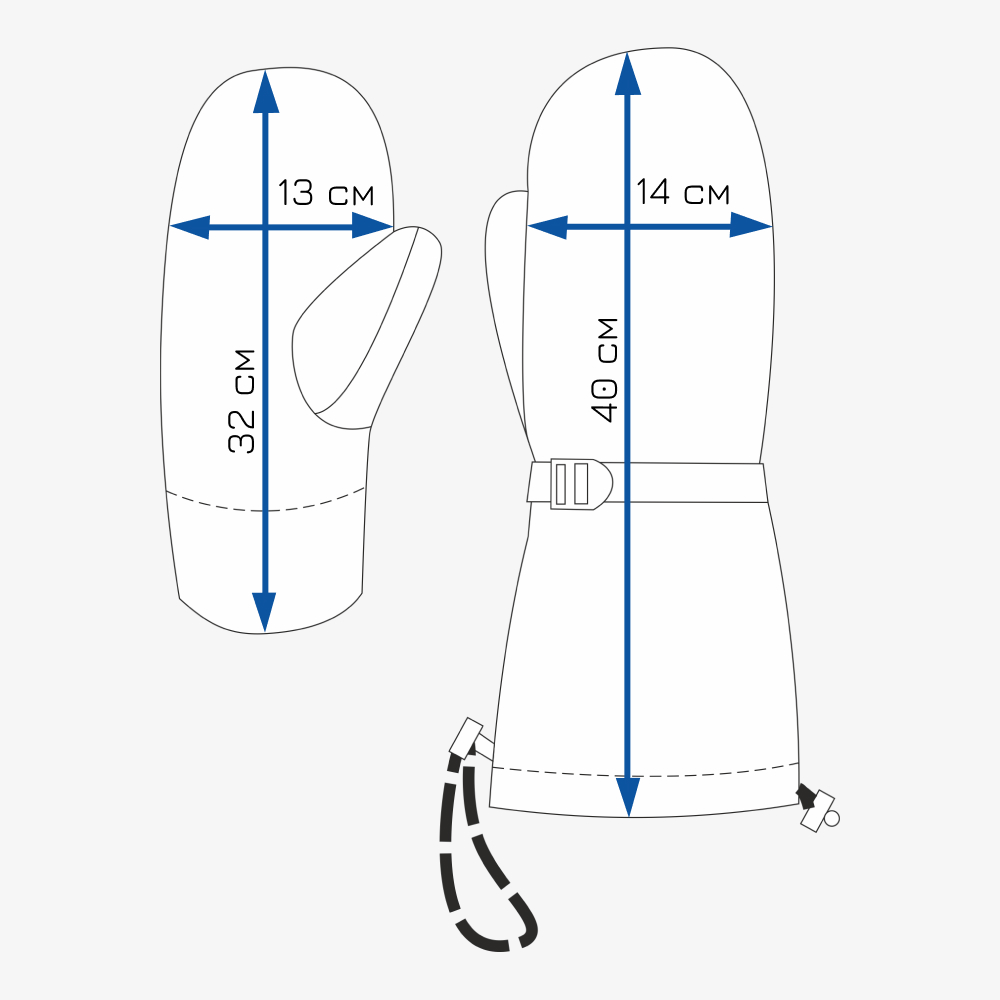 • регулировка раструба наружной варежки эластичным шнуром с фиксатором;