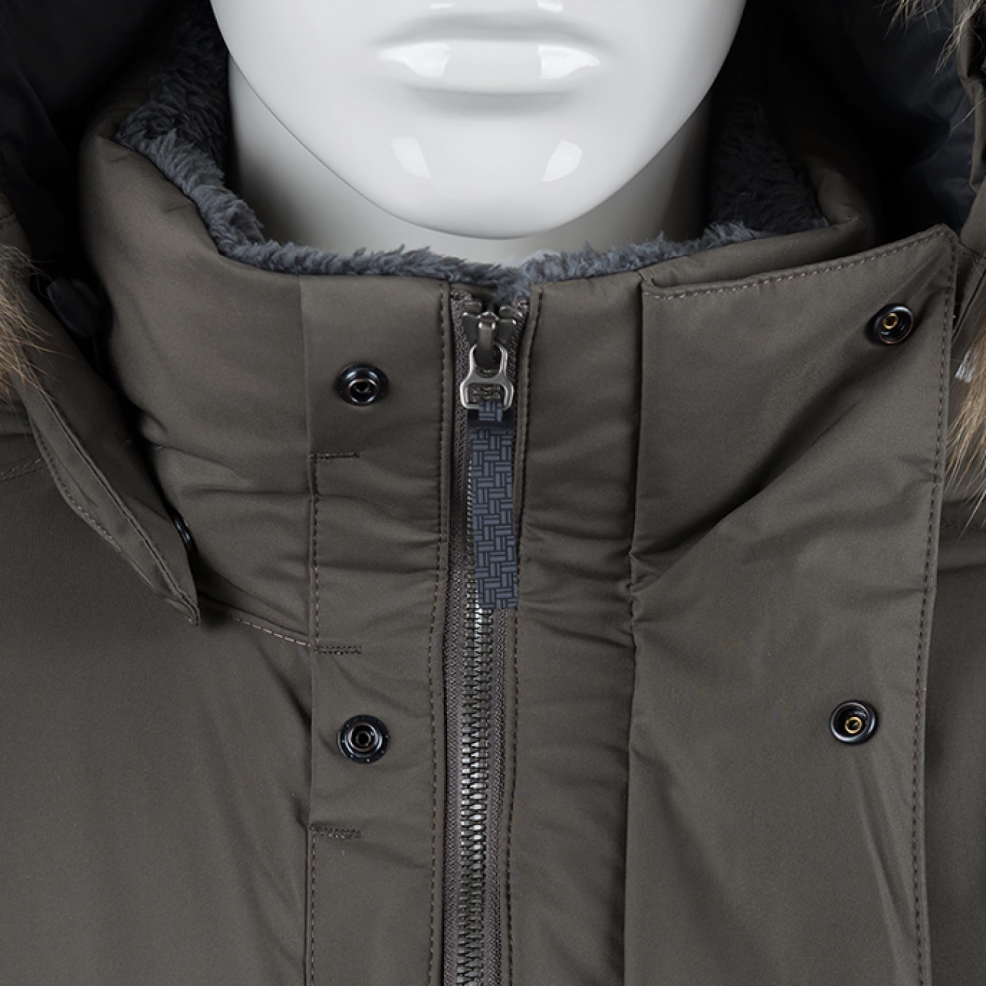 Удлиненный силуэт парки позволяет при кратковременном пребывании на морозе обойтись без использований теплых штанов, а двухзамковая молния позволяет комфортно использовать куртку в транспорте.