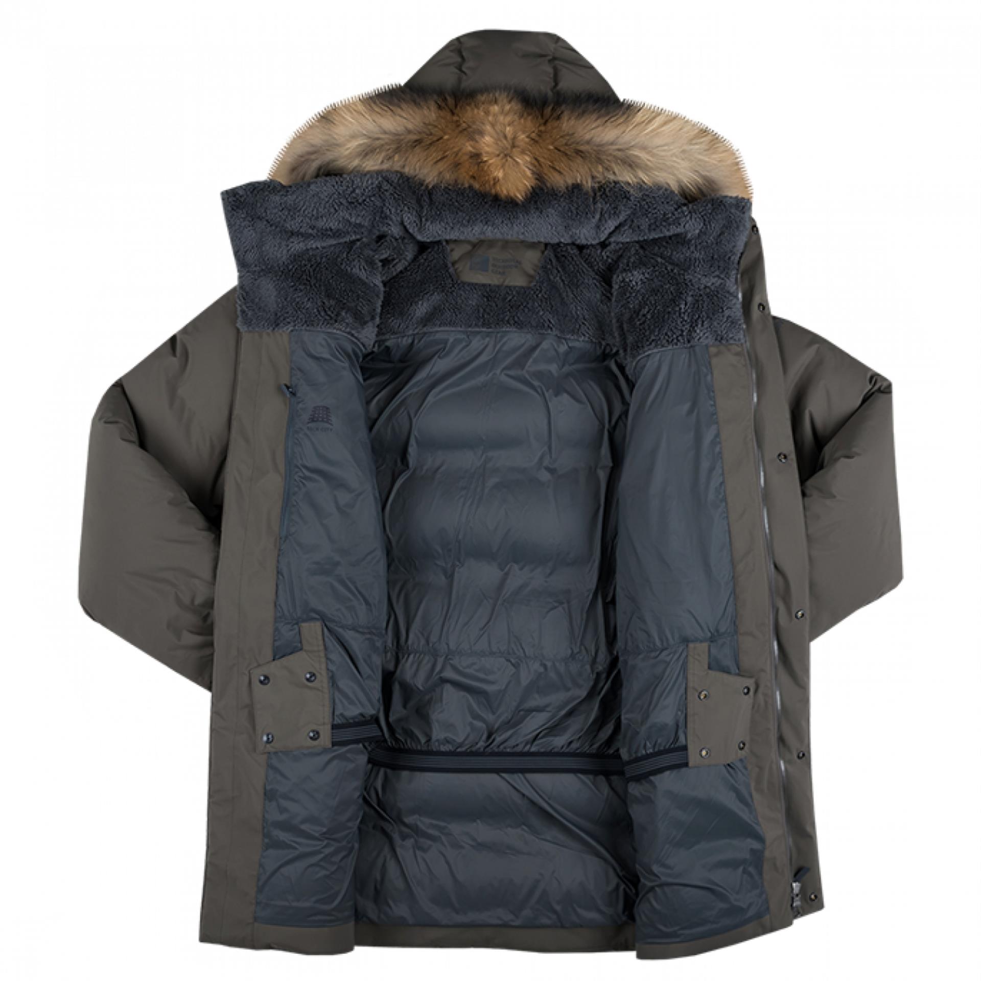 Парка выполнена из прочной мембранной ткани с функциональной поровой мембраной StormGuard и утеплена большим количеством гусиного пуха SmartDown 700, что позволило получить модель, превосходящую традиционные экспедиционные аляски сопоставимой теплоизоляции по погодозащищенности, и при этом выиграть в весе практически вдвое.