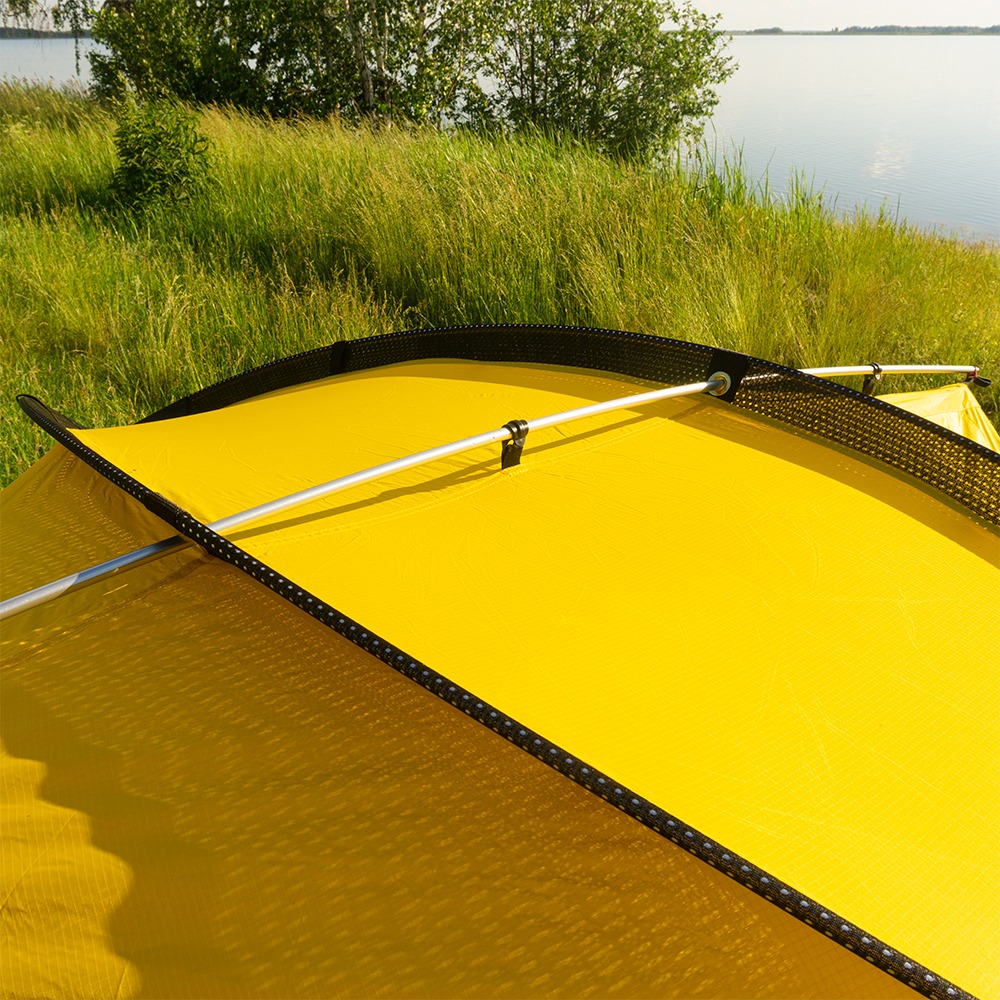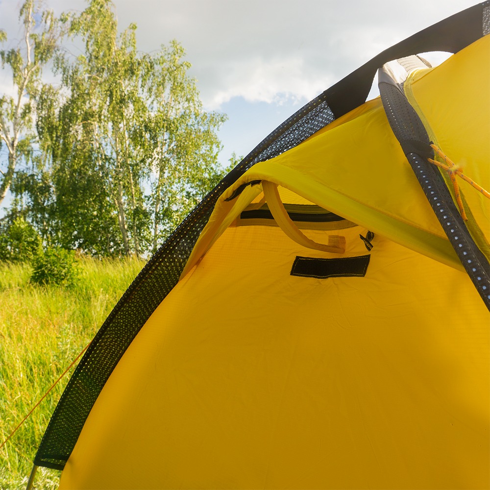 Материал тента 40D Nylon RipStop Si/PU высокопрочный, имеет комбинированное покрытие силикон/полиуретан. Несомненным преимуществом силиконовой пропитки является ее способность проникать в волокна ткани, делая материал более устойчивым к разрывам и ультрафиолетовому излучению. Полиуретановое покрытие обратной стороны нейлона позволяет проклеить швы палатки. В структуре материала RipStop используется упрочнённая армированная нить, что также повышает прочность на разрыв, при сохранении веса и плотности ткани.