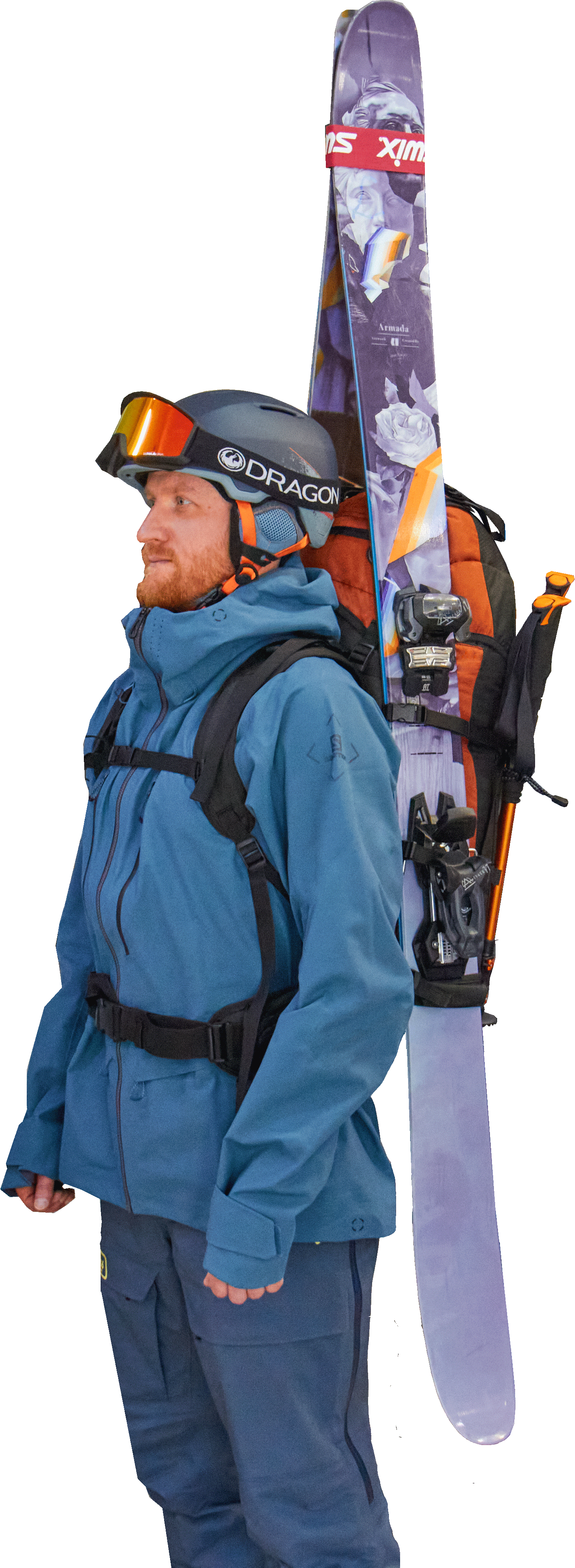 • оснащён усиленными, увеличенными стропами для А-образного крепления лыж;