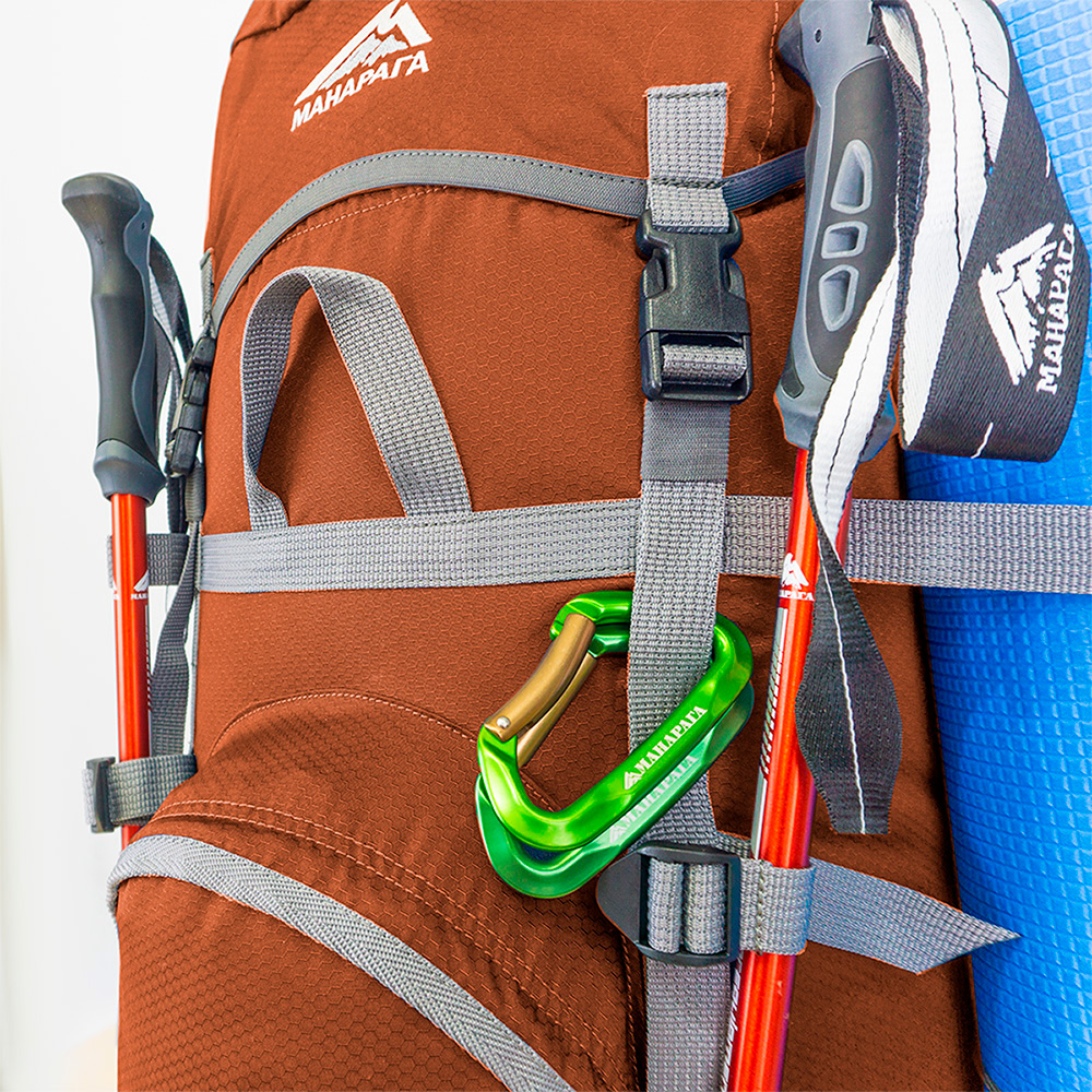 • система крепления ледового снаряжения или трекинговых палок: на фасаде рюкзака вдоль стропы расположены две регулируемые стяжки, а внизу две петли;