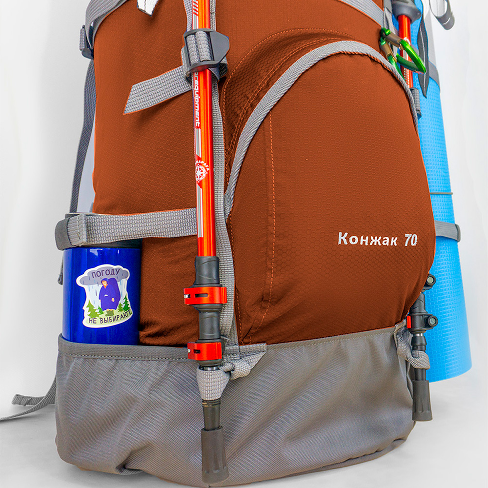 Рюкзак МАНАРАГА Конжак-70 V3 подойдет для пеших и горных походов средней большой продолжительности.