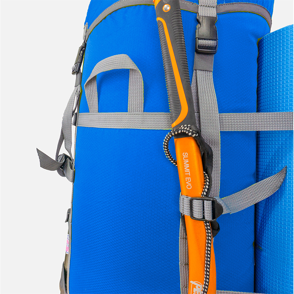• система крепления ледового снаряжения или трекинговых палок: на фасаде рюкзака вдоль стропы расположены две регулируемые стяжки, а внизу две петли;
